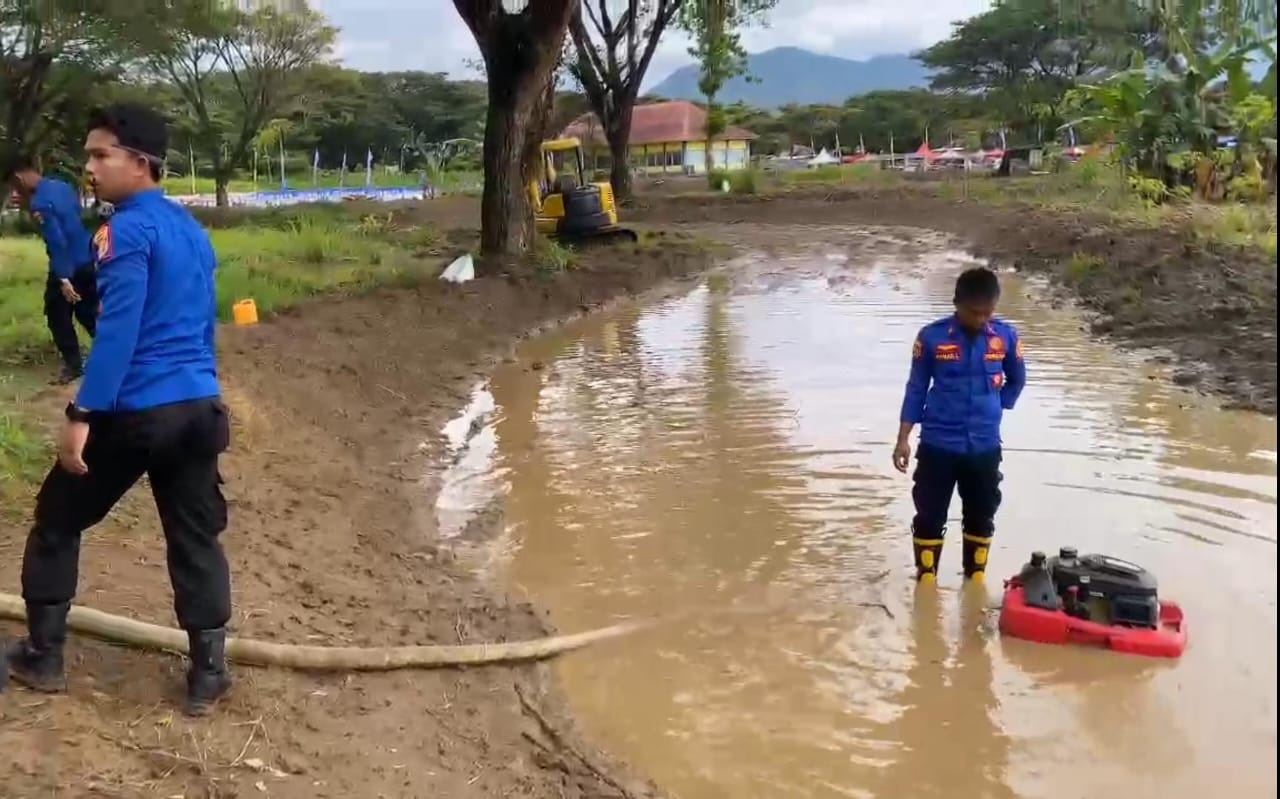 Damkar Polman Dukung Kelancaran Event Olahraga dengan Penanganan Genangan Air dan Lumpur di Sport Center Polewali...