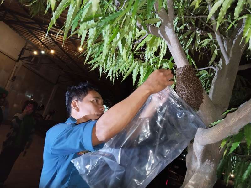 Evakuasi Sarang Lebah di Depan BRI Unit Darma