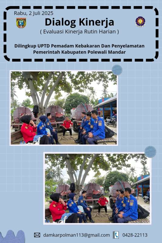 UPTD DAMKAR, POLMAN - Unit Pelaksana Teknis Daerah (UPTD) Pemadam Kebakaran Kabupaten Polewali Mandar melaksanakan kegiatan Dialog Kinerja pada Rabu pagi, 02 Juli 2025.